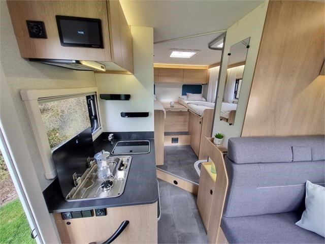 Isotek construction with aluminium profiles and side skirts, polyester underbody and roof covering, stronger extended chassis, thermal acoustic insulation, dual sealed hatches, double glazed windows