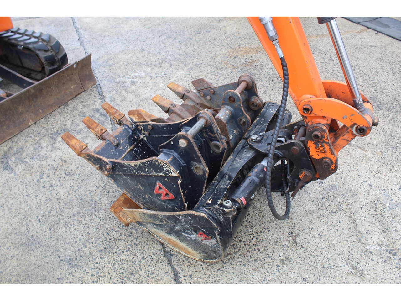 Attachments: Draw pin hitch, 900mm tilt bucket, 300mm dig bucket, 400mm dig bucket