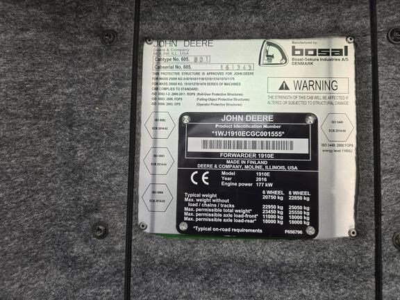 2016 John Deere 1910E, Very tidy example, Been through workshop and ready for work. Has oil sample history. All enquires welcome. stk# 514461