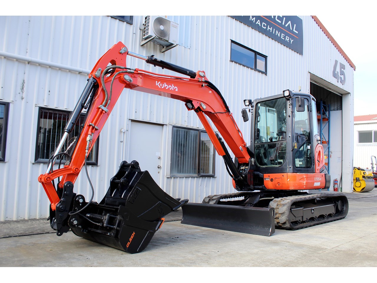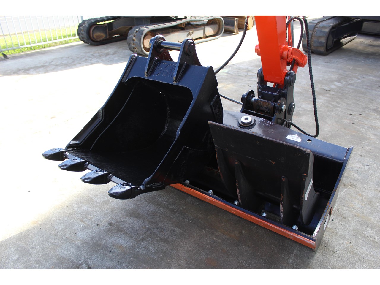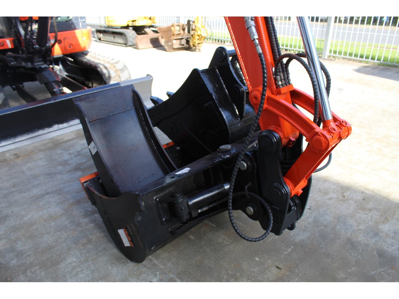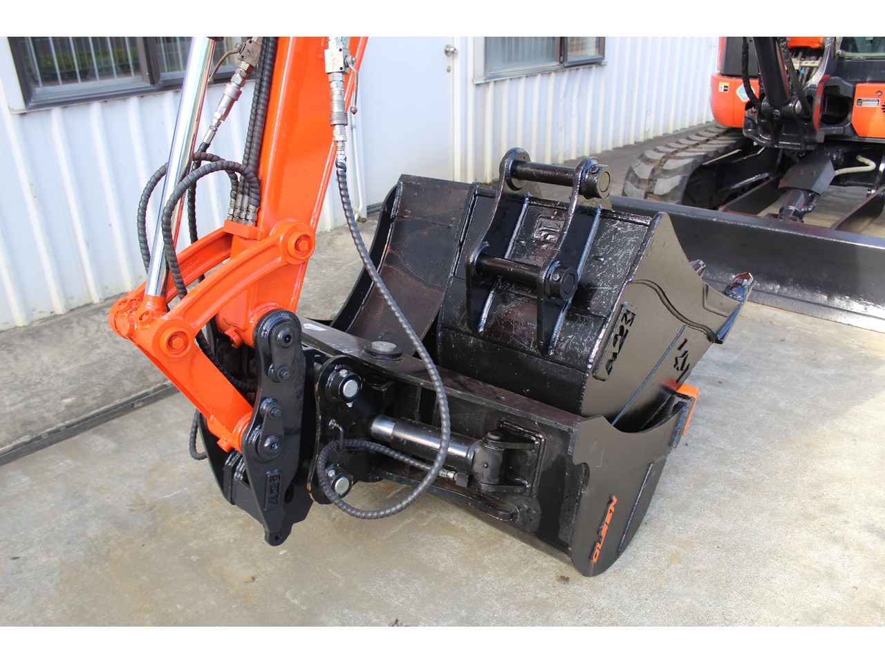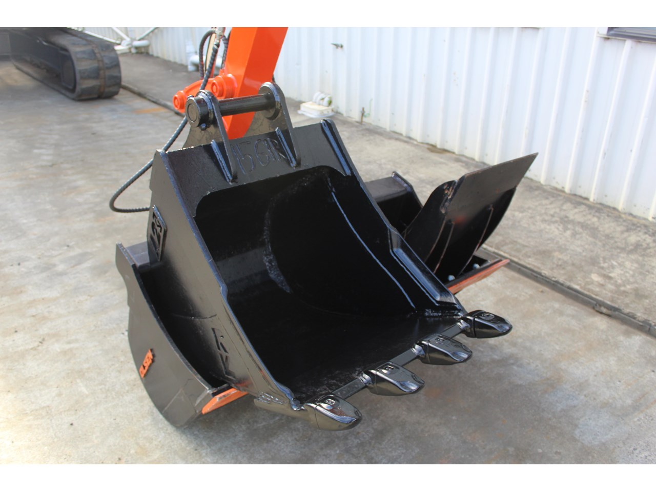 Attachments: Quick hitch, 600mm dig bucket, brand new Olsen Attach 1250mm tilt bucket & 400mm spade