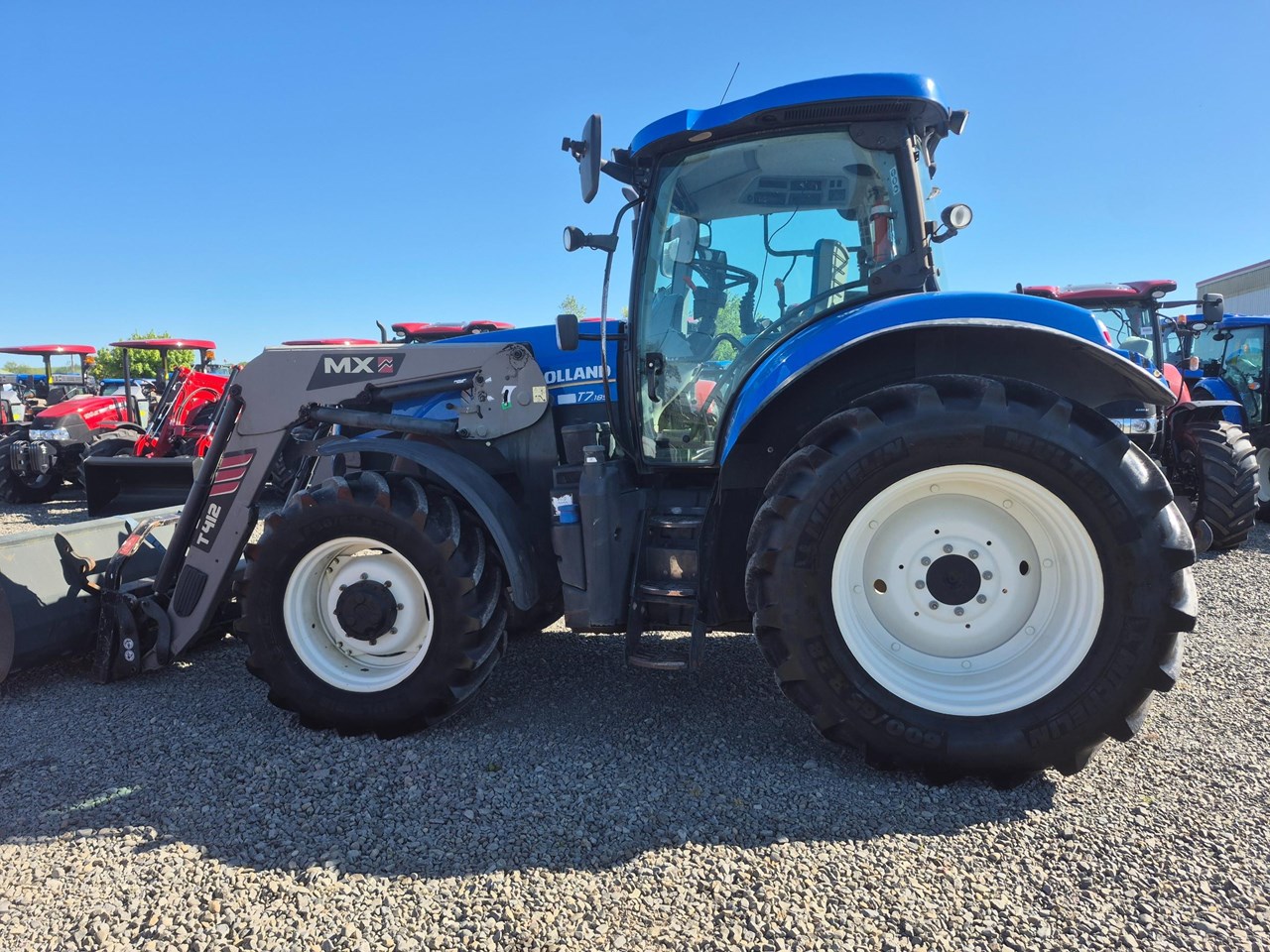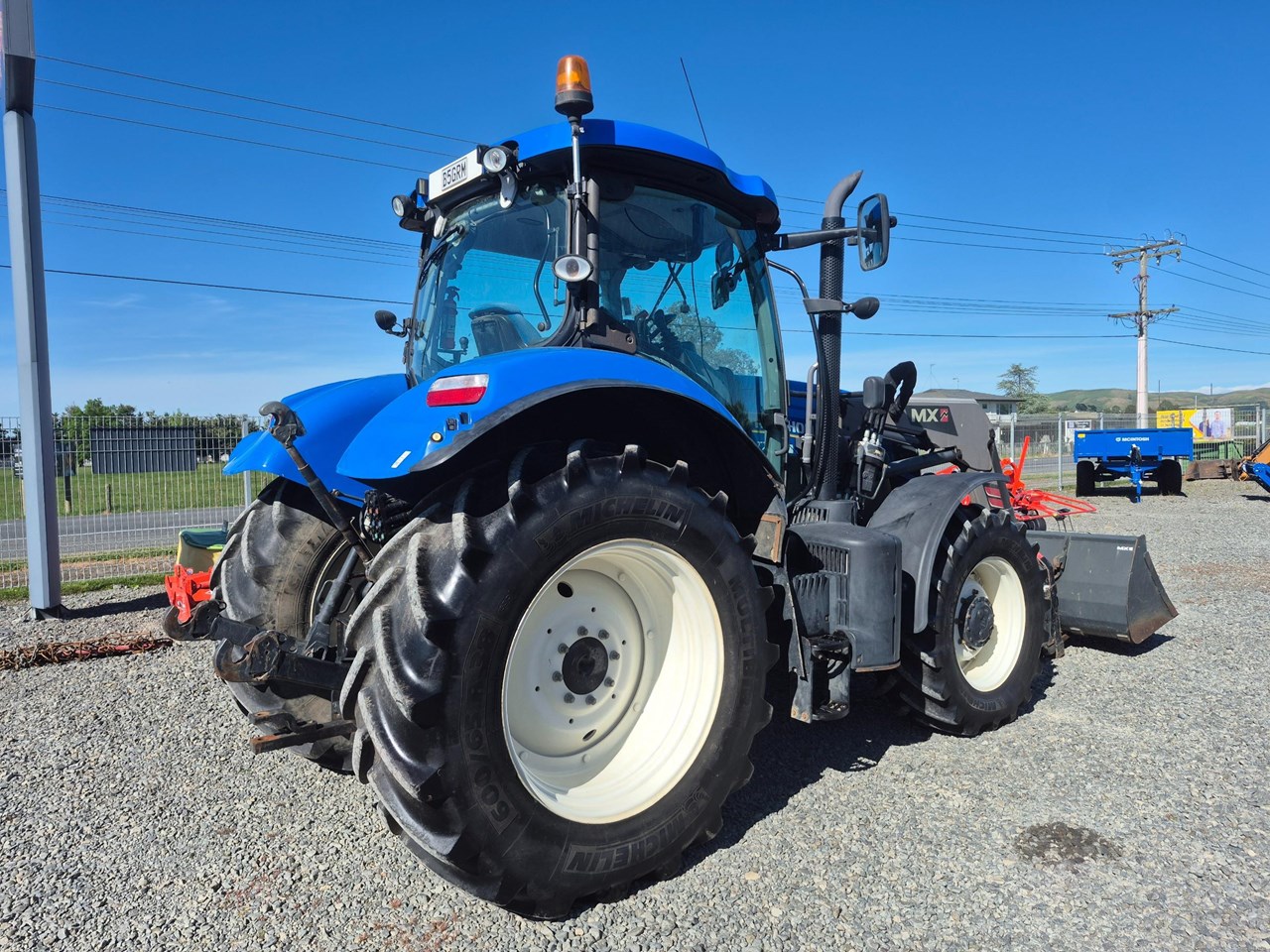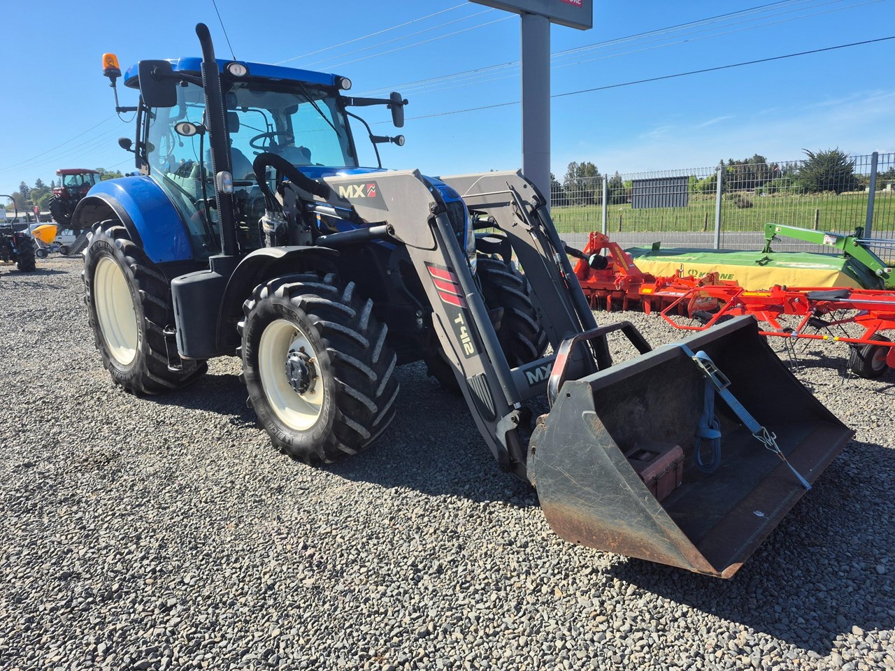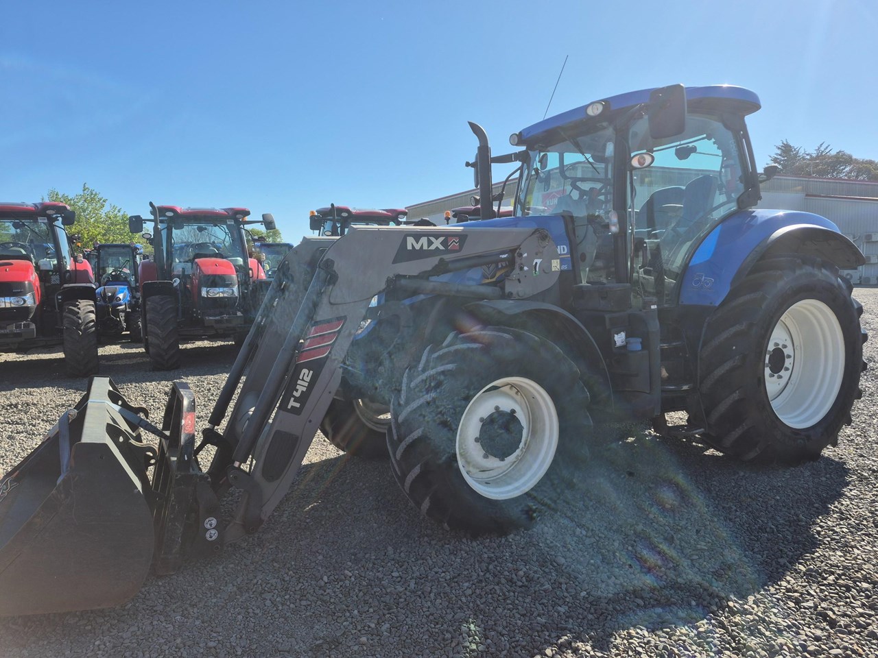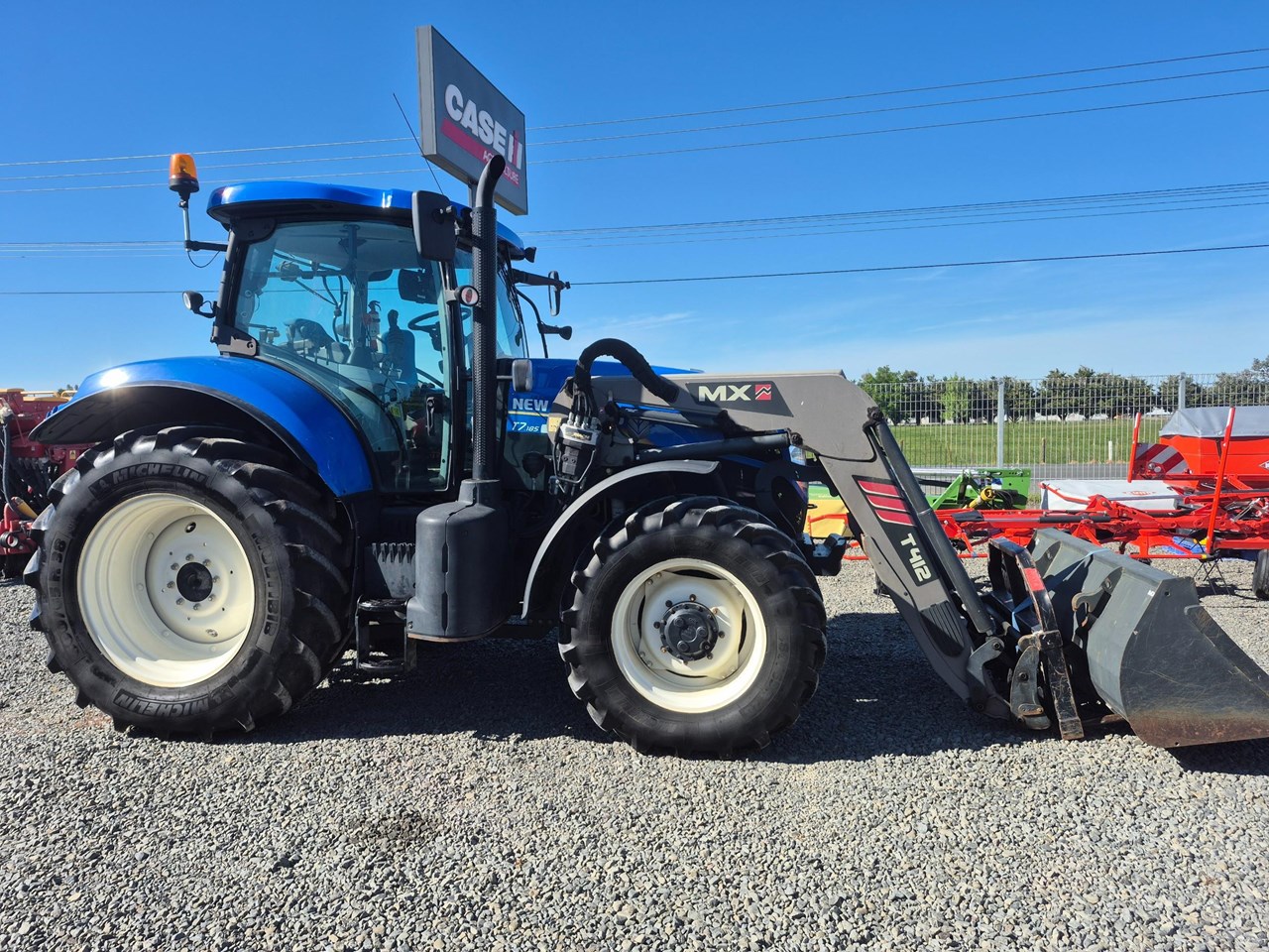 New Holland T7.185 Power Shift Tractor with an MX self-levelling loader complete with bucket and bale forks.