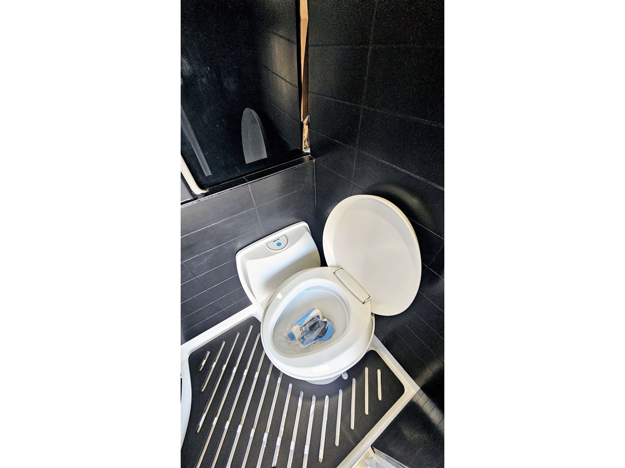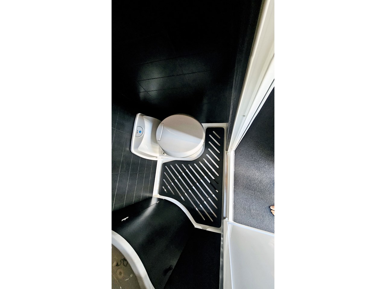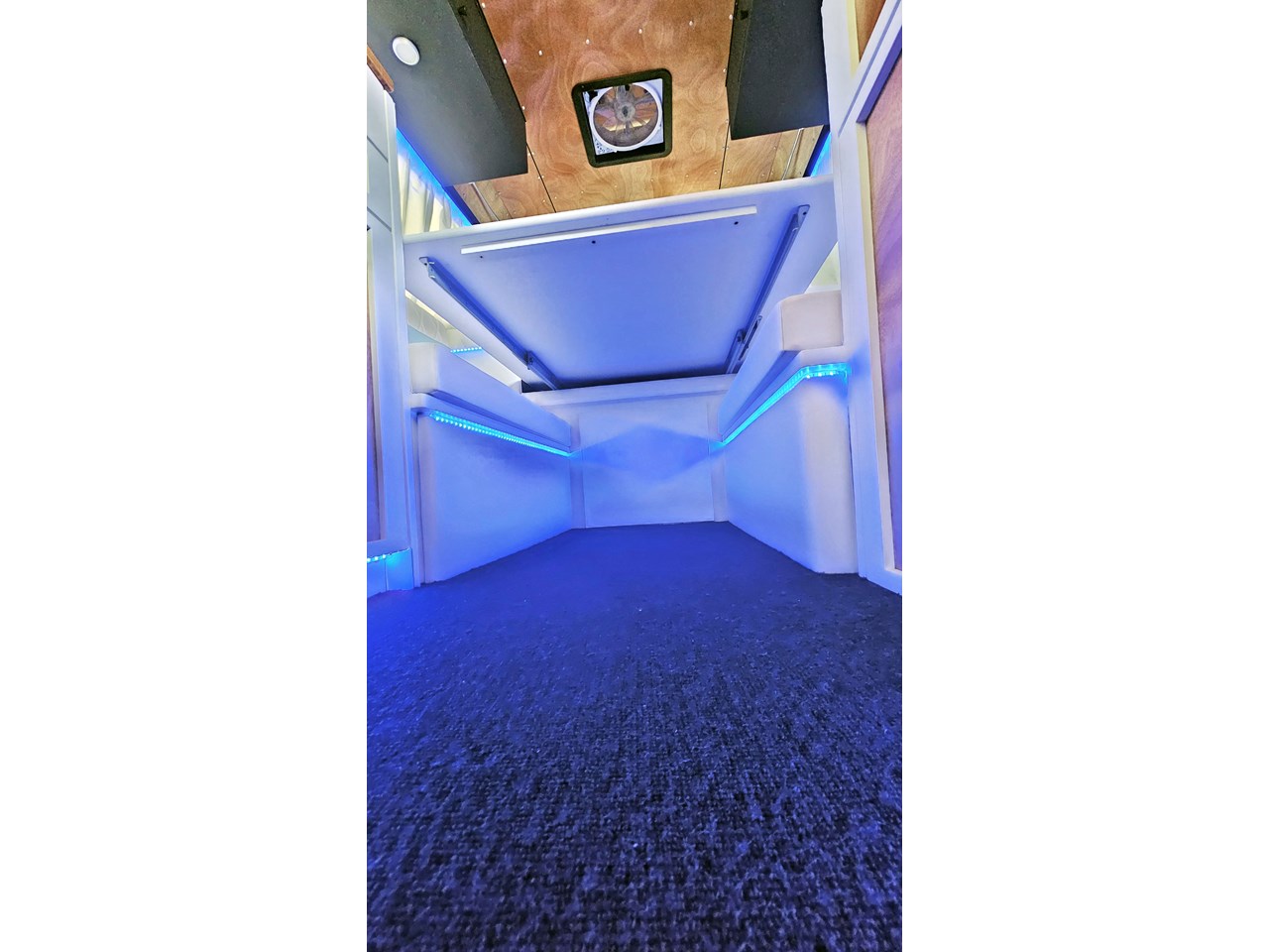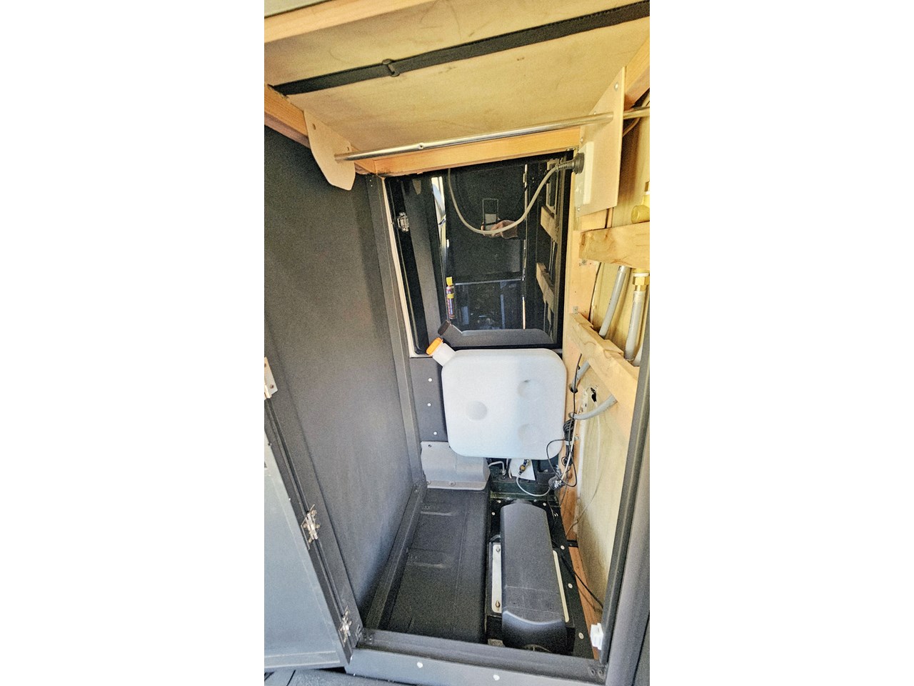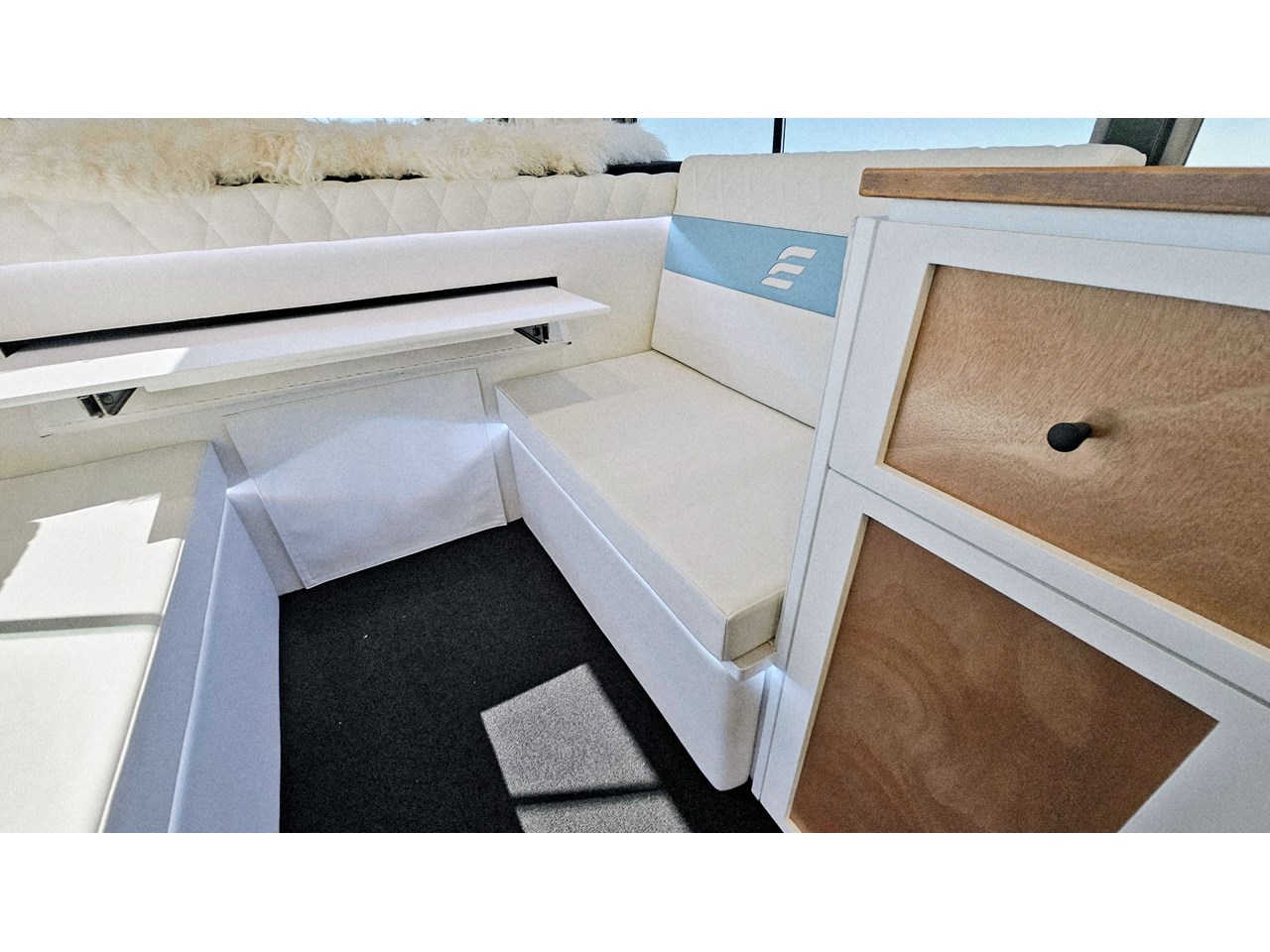The wetroom is another work of art; all surfaces are sealed with 3 coats of epoxy sealer, then tanked with 3 coats of marine epoxy. The base is then coated with another 3 coats of epoxy brushing polyurethane, making the room completely waterproof and aesthetically stunning. All before the 4mm okoume ply tile board is cut and grooved, coated with 3 coats of shellac-based sealer on both sides, 3 coats of automotive lacquer, then finally fixed and sealed at all joins.