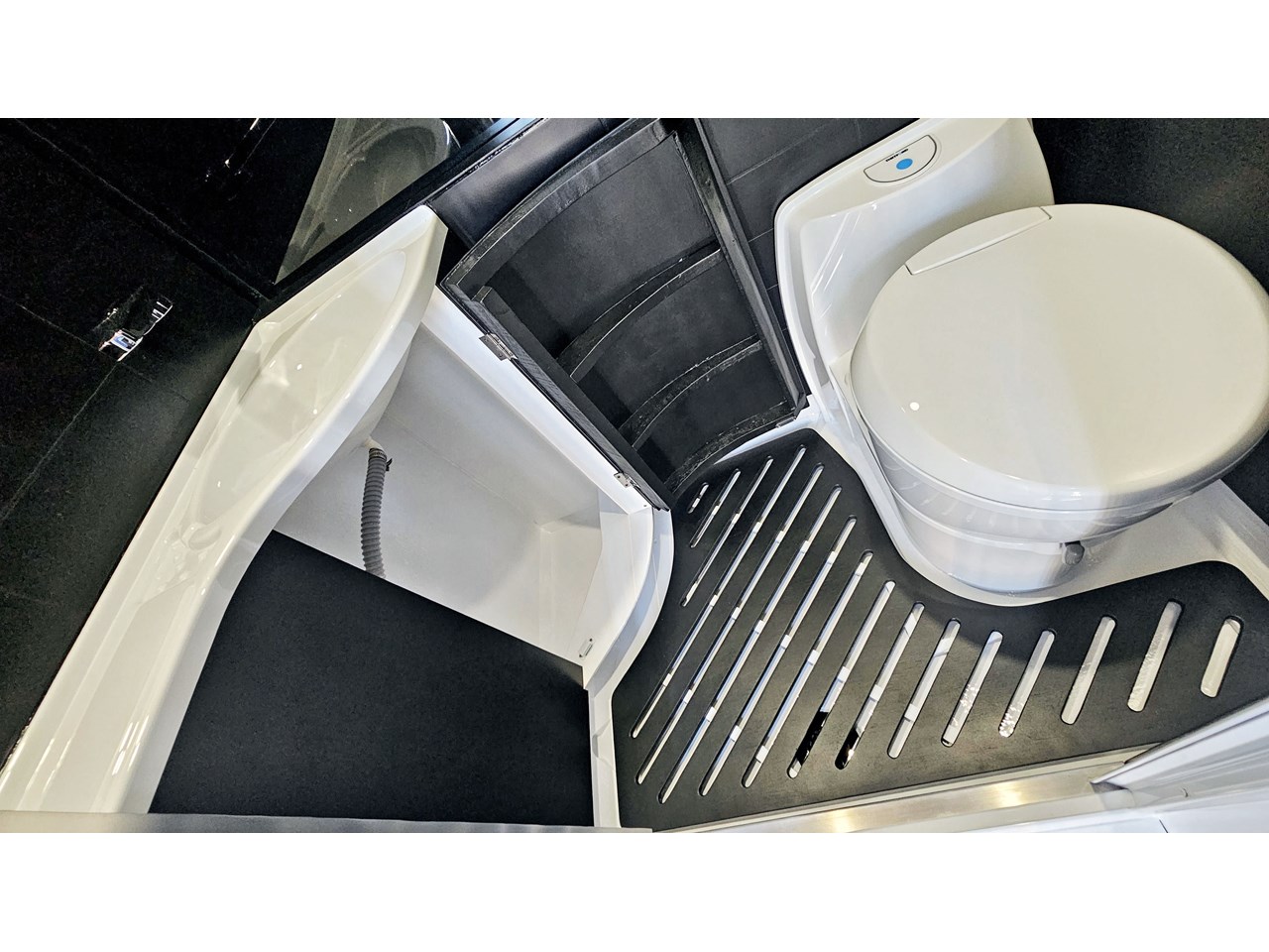 - 296L fresh + 178L greywater capacity, monitored via central touch screen