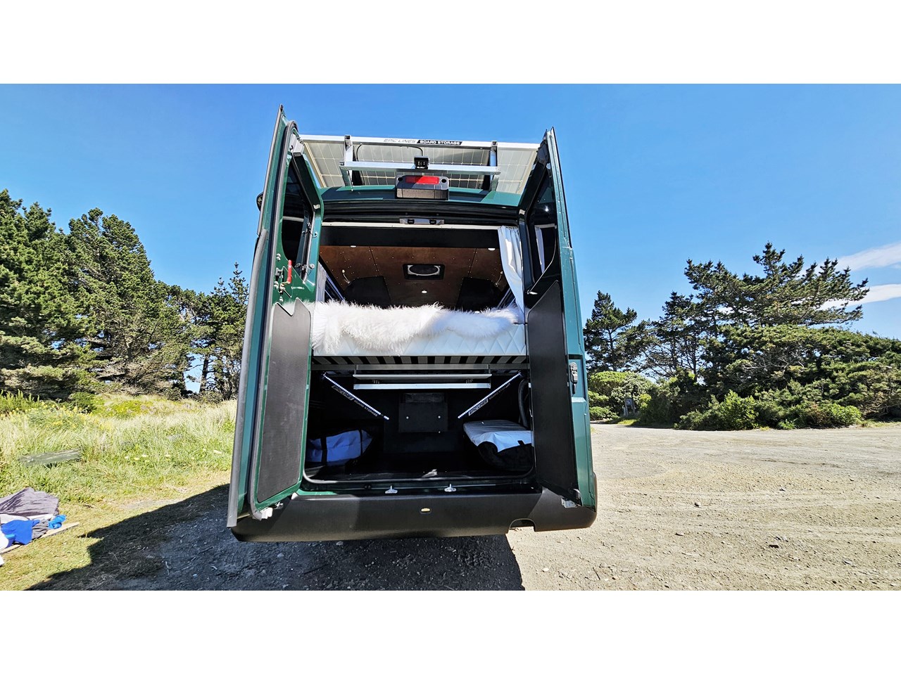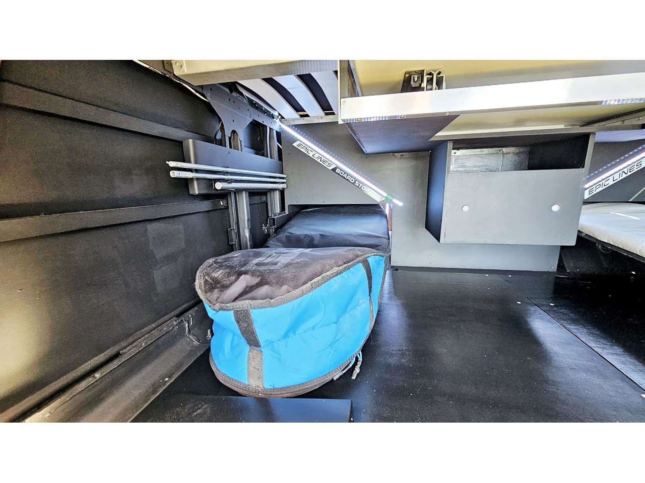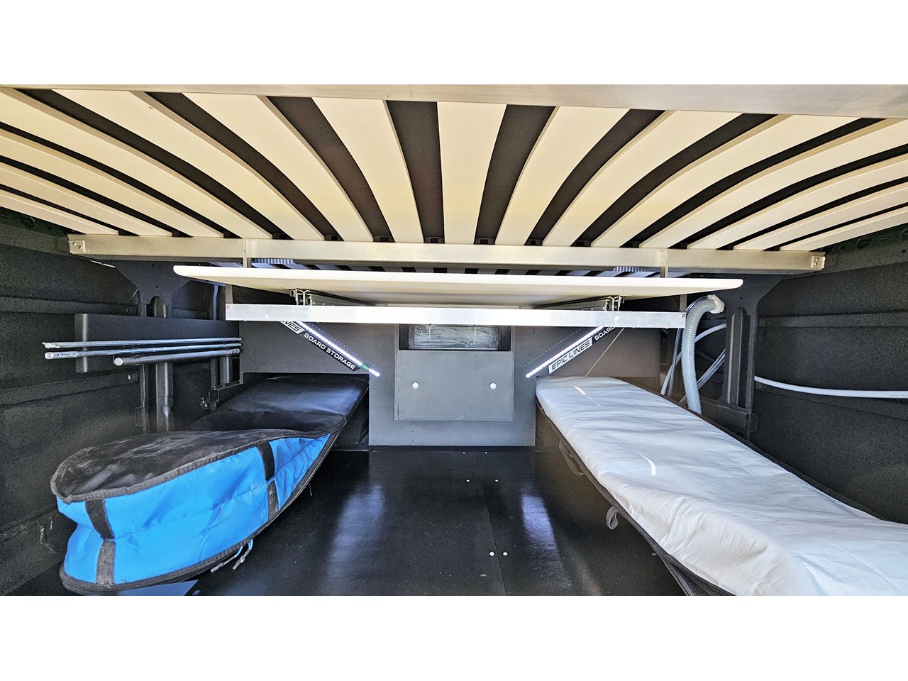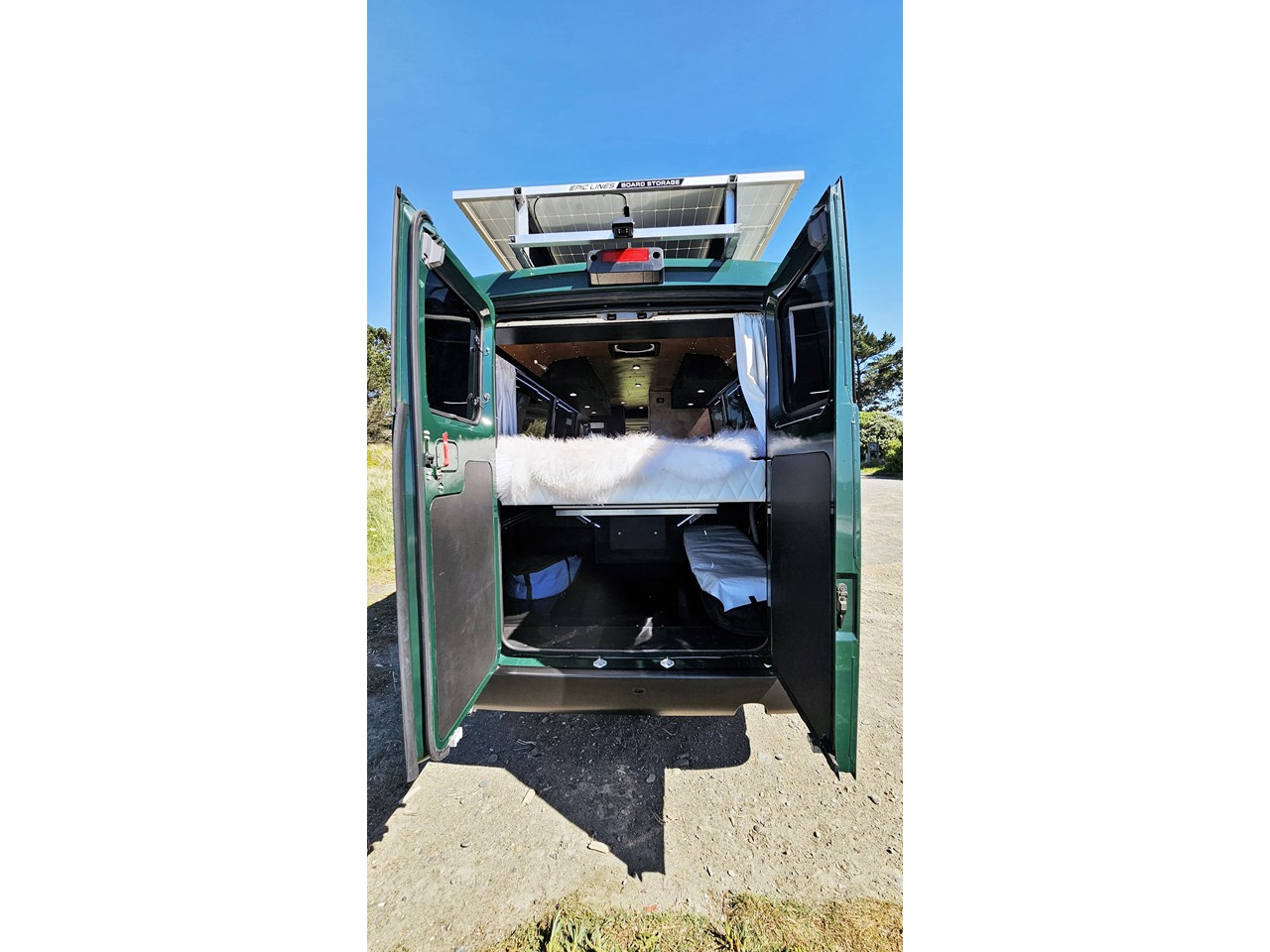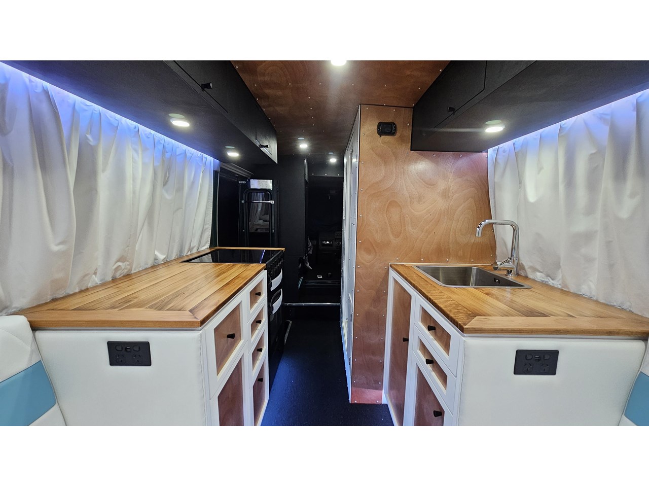 - Impressive storage capacity inside and out, including inside and outside surfboard storage, a full-size wardrobe for two, as well as lots of cupboards in handy locations