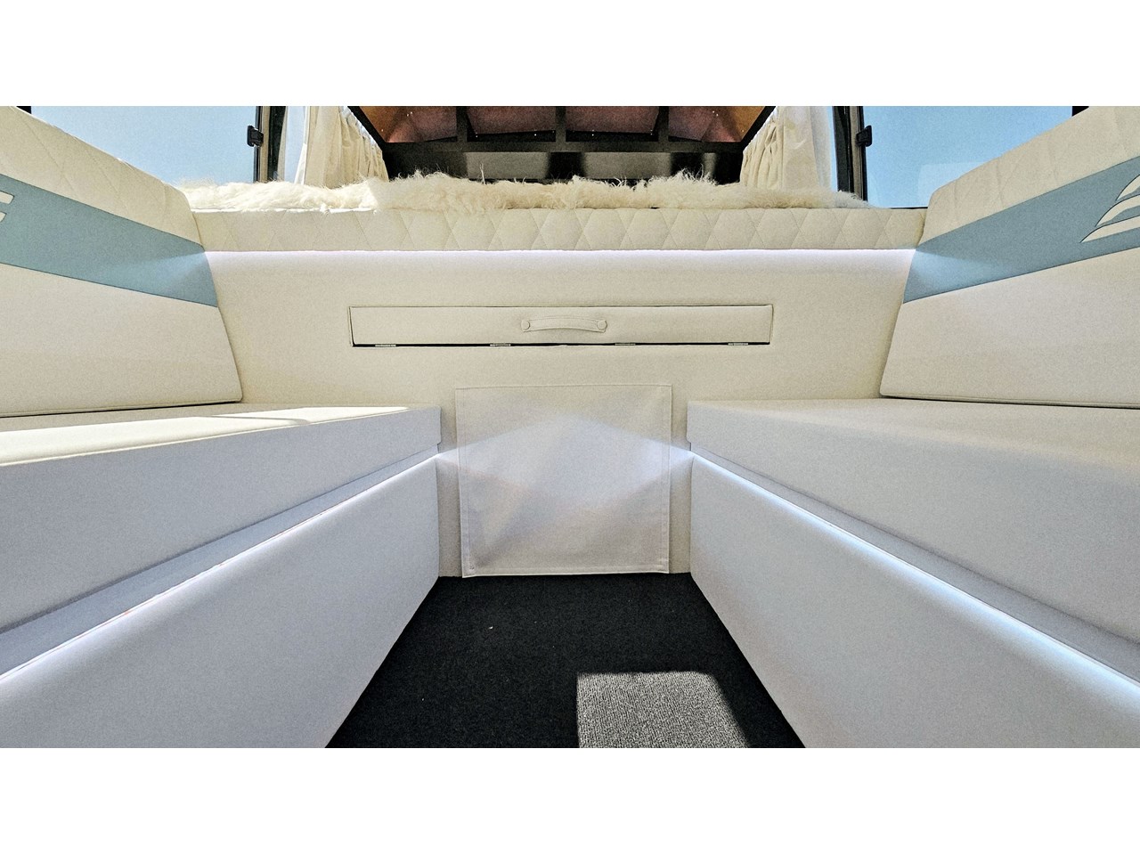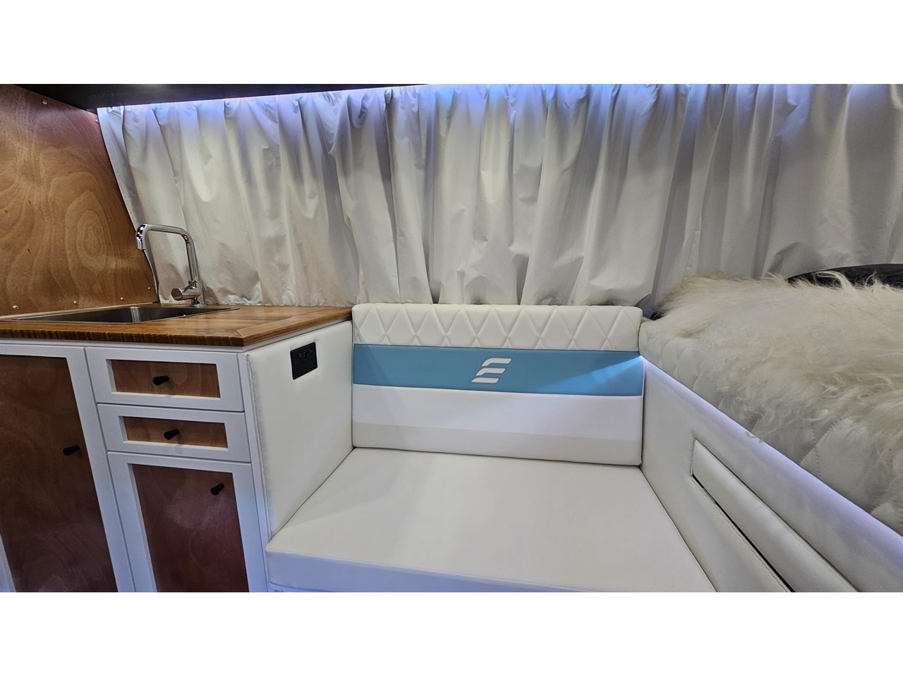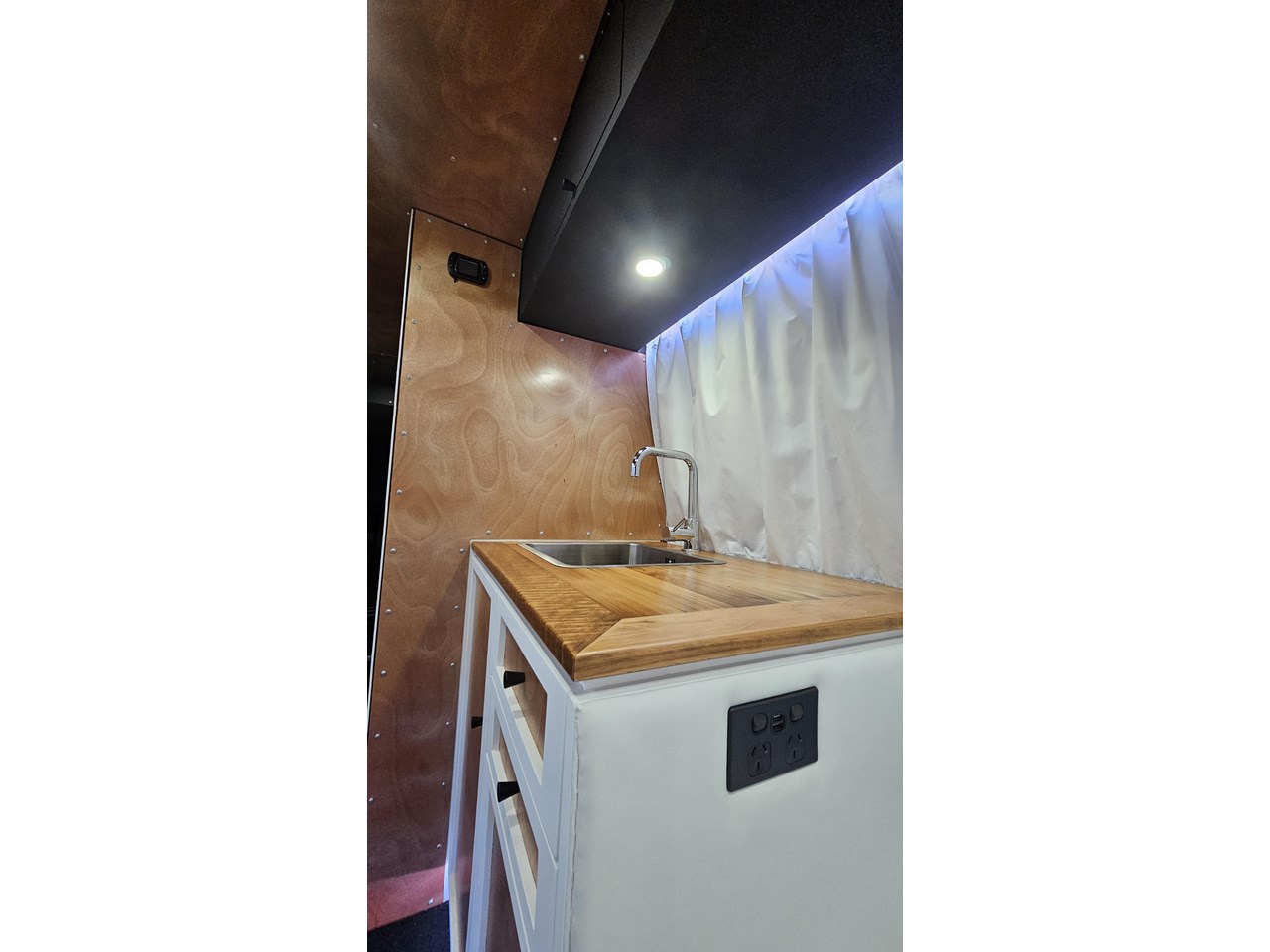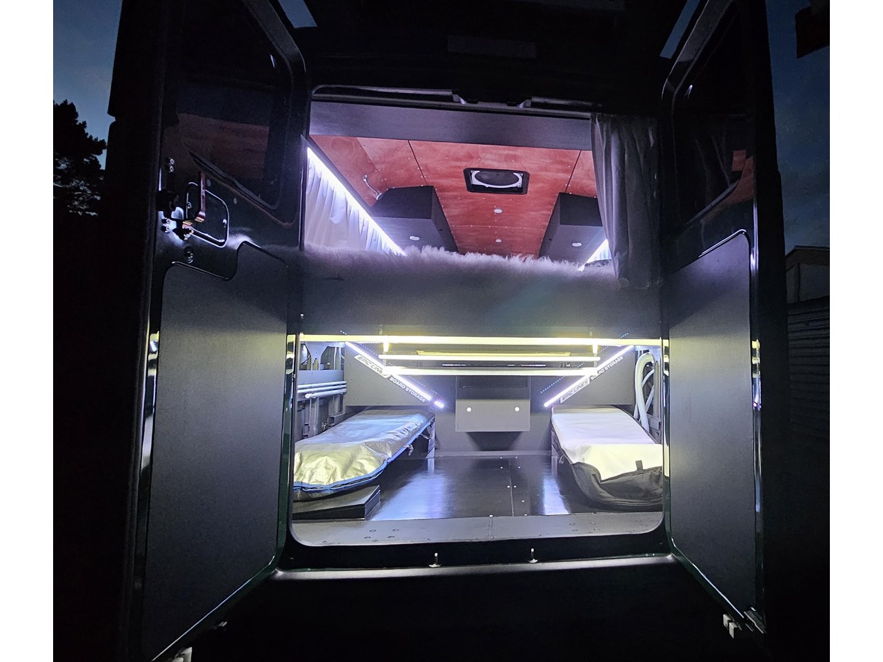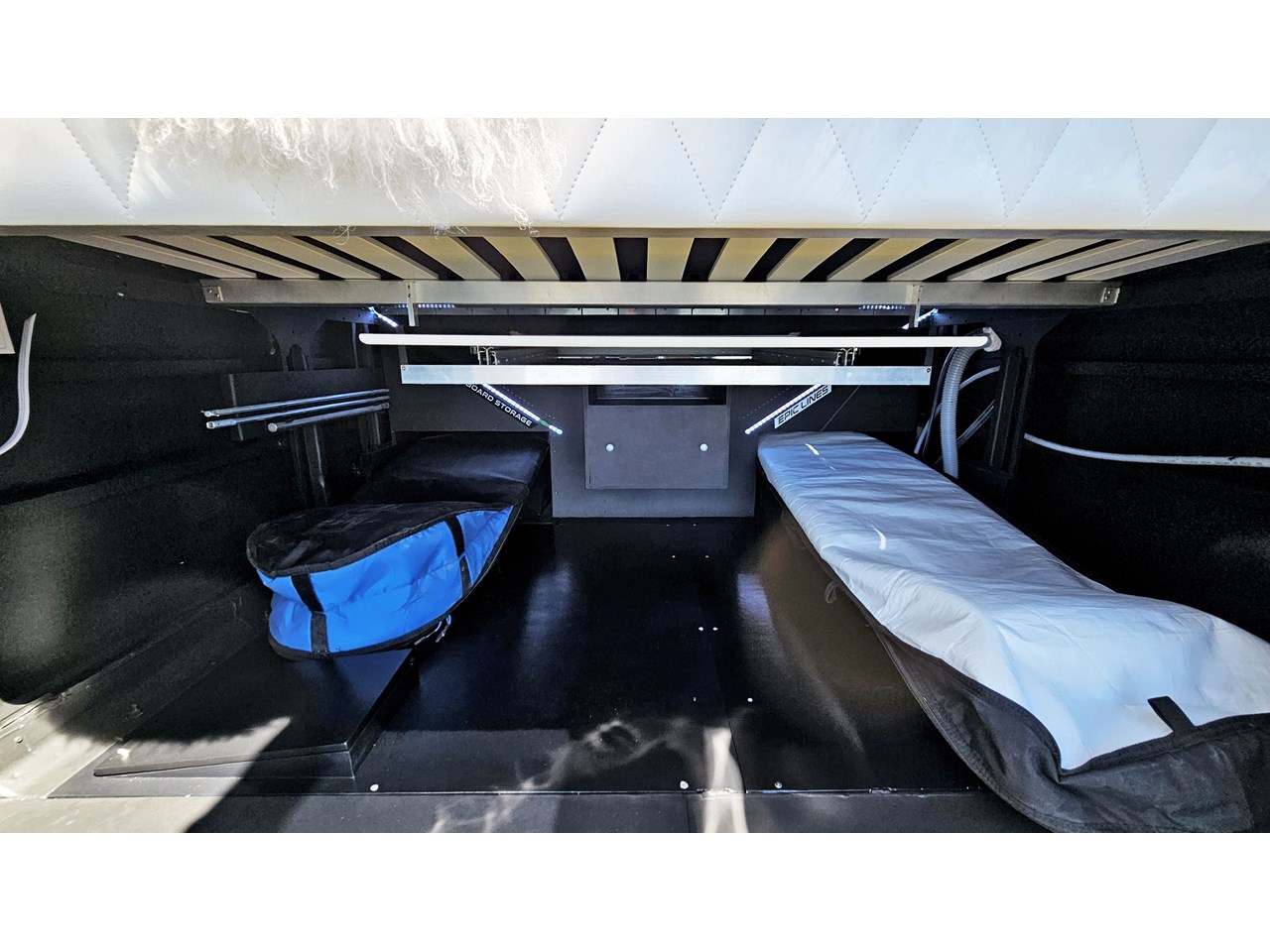 - Impressive storage capacity inside and out, including inside and outside surfboard storage, a full-size wardrobe for two, as well as lots of cupboards in handy locations