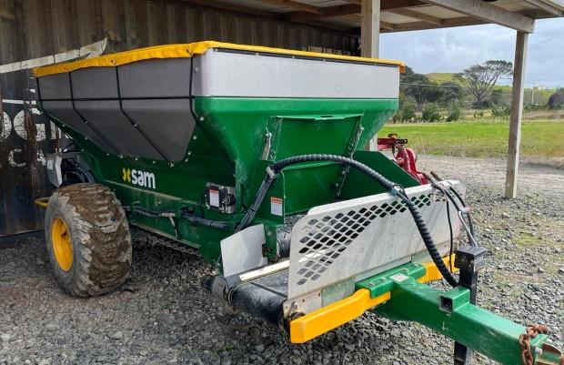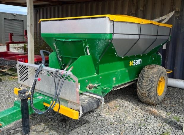 SAM 2.0 Cubic Mtr - 2.0 Cubic Mtr Orchard Spreader, Standard Cover, Additional 1.0 Cubic Mtr Top Hat Extension (Total 3.0 Cubic Mtrs). Single Axle, 400/60 Flotation Tyres. Capable Of Banding And Spreading At the Press Of A Button. SAM Computer Controlled. Very Well Maintained.
