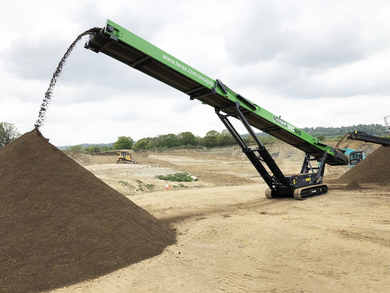 The TC65-T features a conveyor length of 65ft (20m) and a capacity of up to 500 tph.
